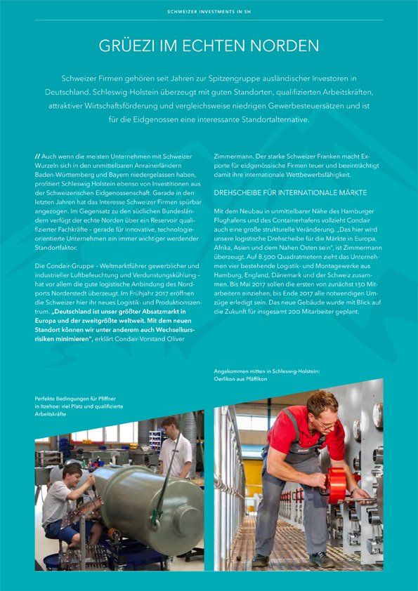 Immer mehr Schweizer Unternehmen zieht es nach Schleswig-Holstein. Der Norden überzeugt mit guten Standorten, qualifizierten Arbeitskräften und