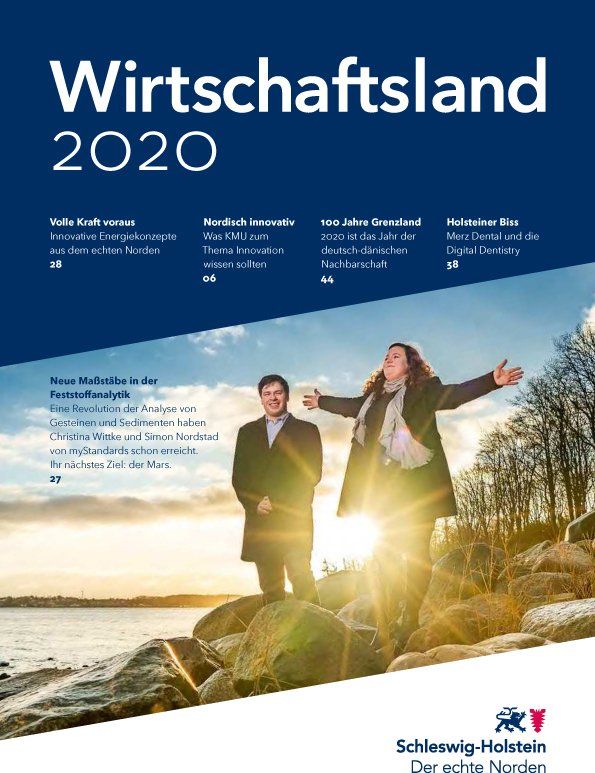 Für das Standortmagazin "Wirtschaftsland" durfte ich schon mehrere Start-ups porträtieren. So auch myStandards. Mit ihrem neuartigen Referenz-Materialien revolutionieren Christina Wittke und Simon Nordstad die Analyse von Gesteinen und Sedimenten in Industrie und Forschung. Ihr nächstes Ziel: der Mars.